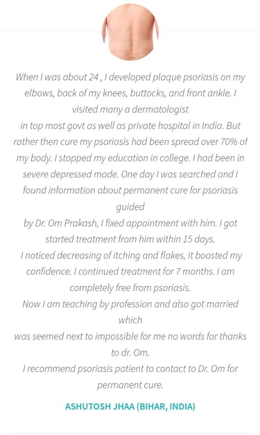 A7. Psoriasis has no permanent cure in any system of medicine. Ayurveda helps control flare-ups, extend remission, and improve quality of life naturally.